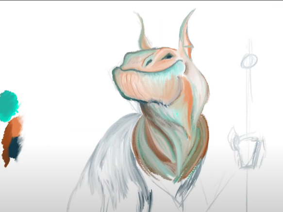 He is SO COOL that someone stole my video and tried to pass this art off as their own. I am assuming they were expecting me to finish him one day, but I never did, so they were outed.